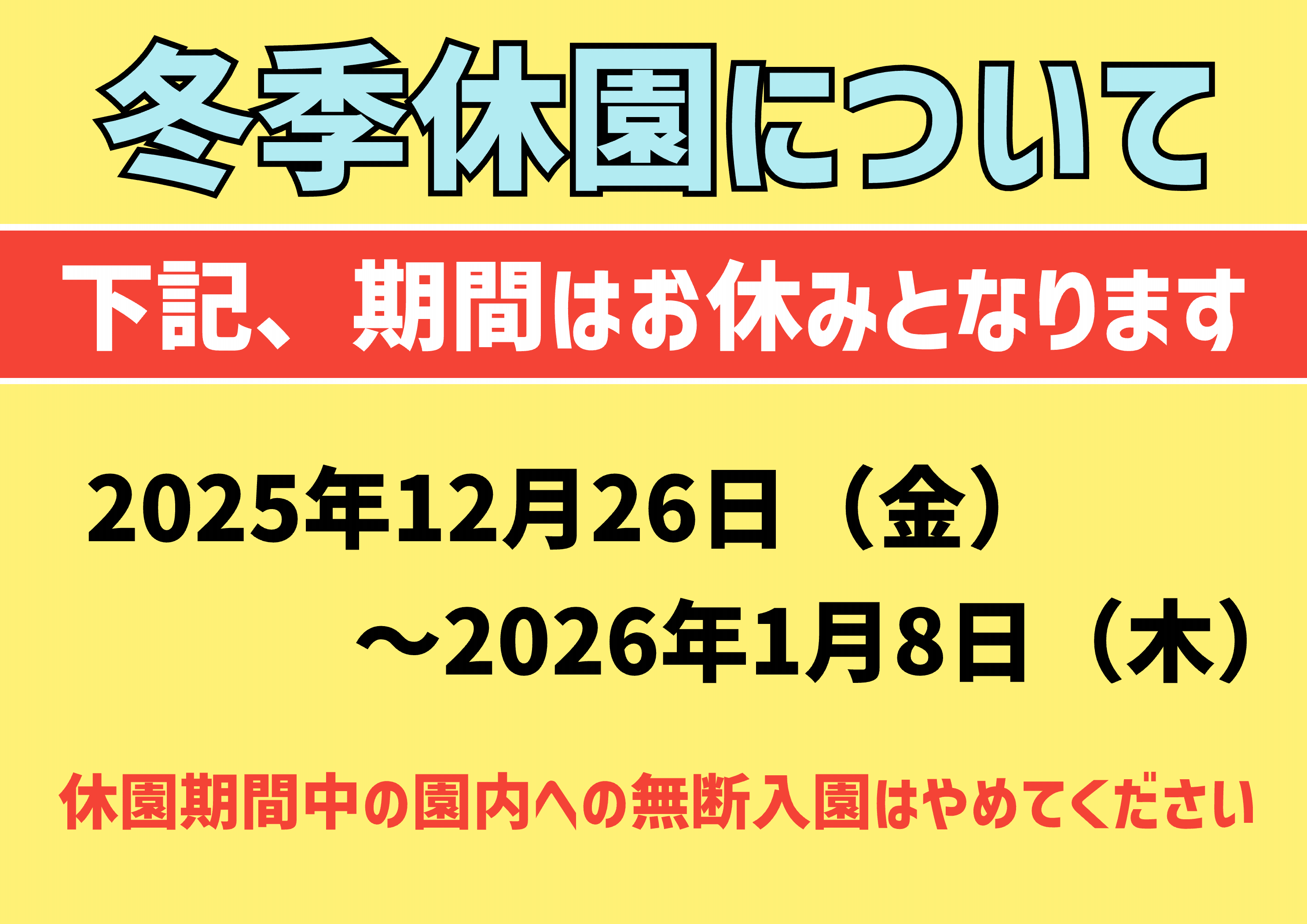 2025年12月26日(金)~2026年1月8日(木)は冬季休園期間となります。