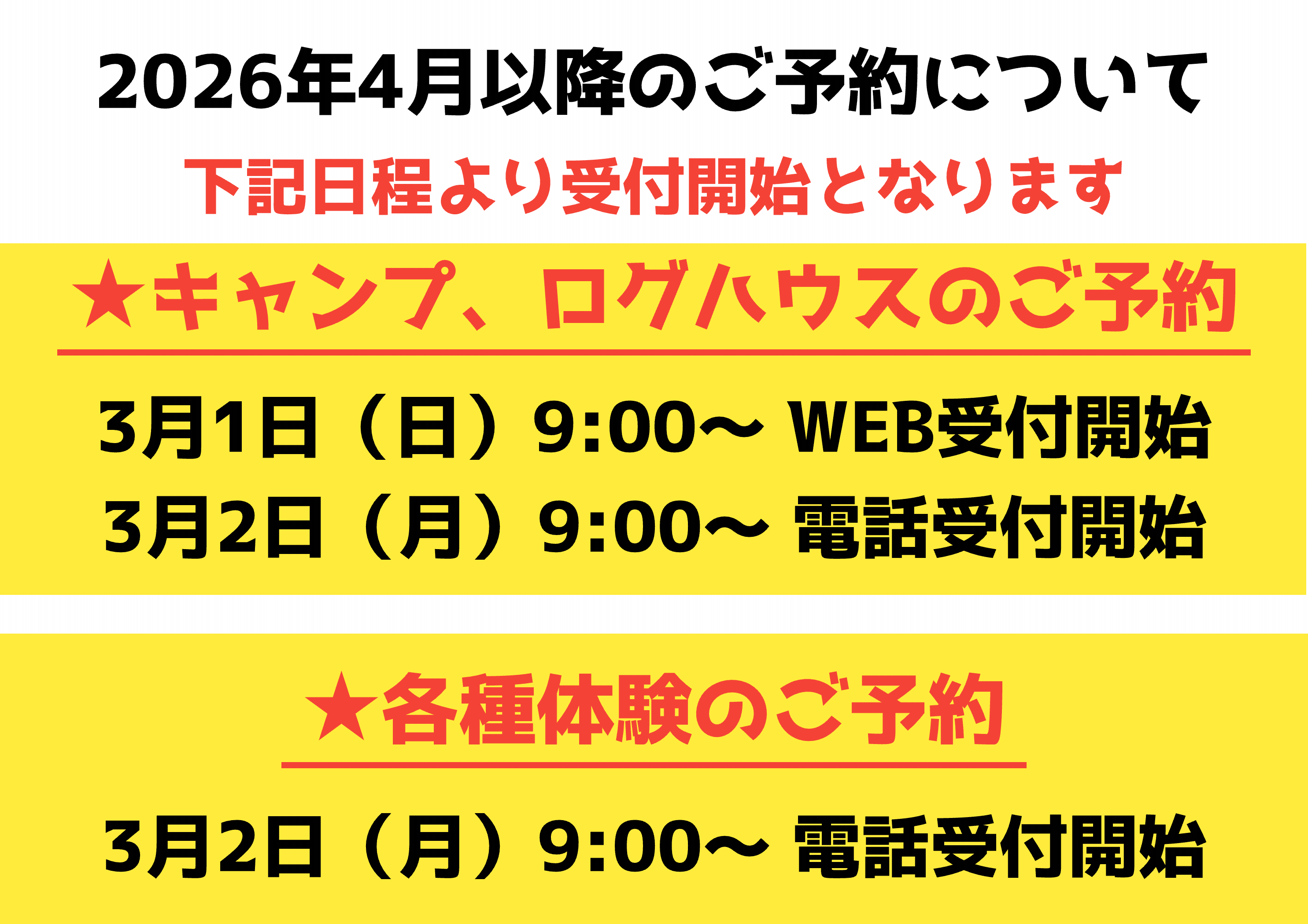 ★キャンプ、ログハウス受付開始
